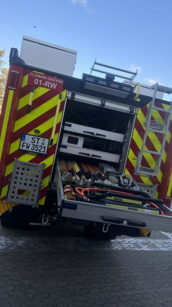 Ausstattung: | Austattung nach DIN 14555-3 u.a.: - eingebauter Generator vom Fahrzeugmotor angetrieben - Möglichkeit der Hauseinspeisung - Rüstsatz - Abstützsystem - Werkzeuge diverser Art - Ausrüstung für Öl- und Maschinenunfälle - Rettungsplattform, auch für Bahnanlagen geeignet |