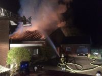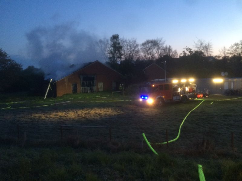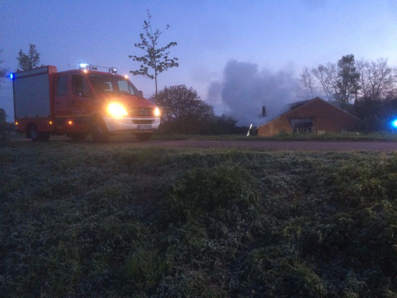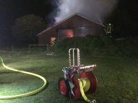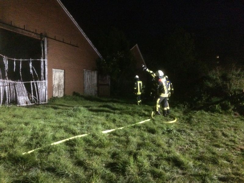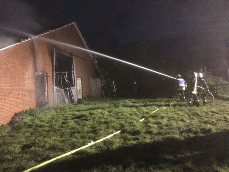 Um das anliegende Wohnhaus vor dem Brand der Scheune zu schützen, wurde eine Riegelstellung über Drehleiter aufgebaut. Die Löschwasserversorgung wurde von der Ems sichergestellt.