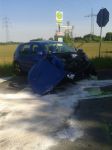 Ausgelaufene Betriebsstoffe werden nach einem Verkehrsunfall aufgenommen.