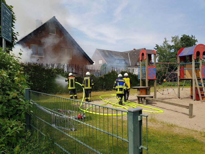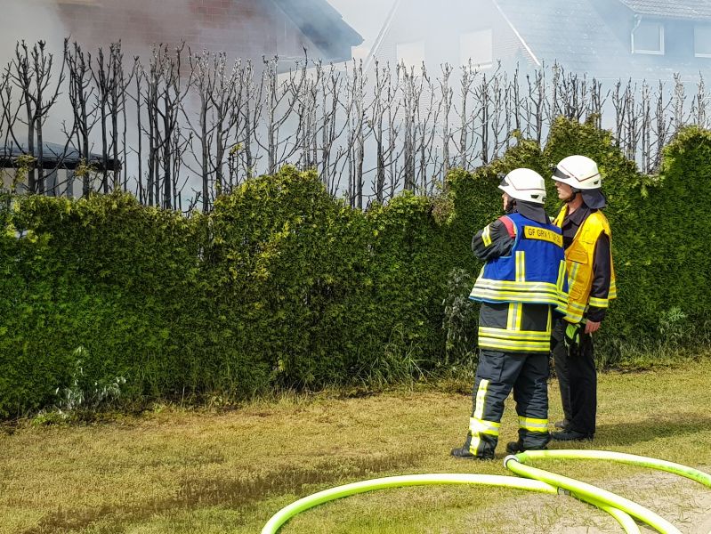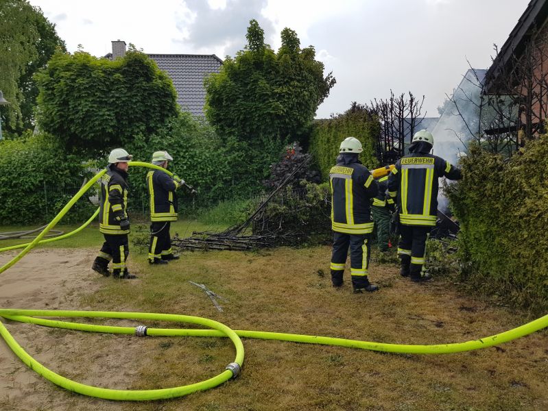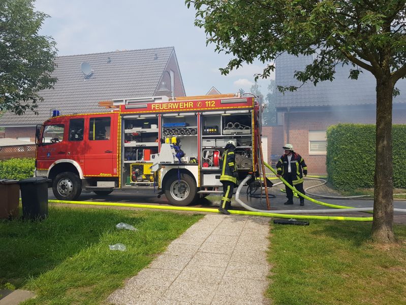 Zu einem Heckenbrand wurde die Feuerwehr am heutigen Nachmittag gerufen. Auf einem Spielplatz am Birkenweg in Reckenfeld war aus unbekannter Ursache eine Hecke in Brand geraten. Das Feuer griff auf ein benachbartes Grundstück über und setzte nachfolgend zwei Holzstapel und ein Geräteunterstand in Brand. Schließlich wurde auch das Wohnhaus in Mitleidenschaft gezogen. Durch eine eine aufgebaute Riegelstellung gelang es den Kameraden das Feuer unter Kontrolle zu bringen und das Wohnhaus zu halten. Die Bewohner hatten das Gebäude selbstständig verlassen können. Der Löschzug Westerode wurde auf Grund von fehlenden Atemschutzkräften nachalarmiert. Im weiteren Verlauf wurde die Hecke zum Spielplatz geöffnet um die Flammen und Glutnester besser ablöschen zu können. Insgesamt waren 4 Trupps unster schwerem Atemschutz eingesetzt.