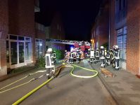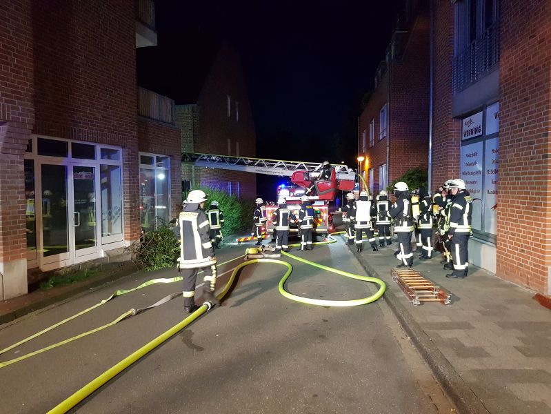 Zu einem Zimmerbrand wurde die Feuerwehr am Sonntag Abend auf die Pfarrer-Mersmann-Stiege gerufen. Dort war in einer Wohnung im 1.Stock eines Mehrparteienhauses aus ungeklärter Ursache ein Feuer ausgebrochen. Beim Eintreffen der Feuerwehr war das Treppenhaus oberhalb der 1.Etage bereits stark verraucht. Der erste Angriffstrupp hat zunächst unter schwerem Atemschutz das Treppenhaus und die Wohnungen im 2.OG kontrolliert. Hier hatten sich 2 Personen auf jeweils einen Balkon gerettet und waren somit nicht unmittelbar bedroht. Anschließend wurden von dem Trupp die Wohnungen im 1.OG kontrolliert. Parallel ging ein weiterer Trupp ebenfalls unter schwerem Atemschutz zur Brandbekämpfung in die betroffene Wohnung vor Dort trafen sie auf einen ausgedehten Küchenbrand, konnten das Übergreifen der Flammen auf benachbarte Zimmer jedoch erfolgreich verhindern. Im Treppenhaus wurde ein Rauchschutzvorhang gesetzt. Nachdem sich der Rauch im Treppenhaus verzogen hatte, konnten die Personen ins Freie geführt werden. Durch den Brandrauch wurden alle sechs Wohnungen vorübergehend unbewohnbar. Eine Person wurde mit Verdacht auf Rauchgasintoxikation ins Krankenhaus gebracht.